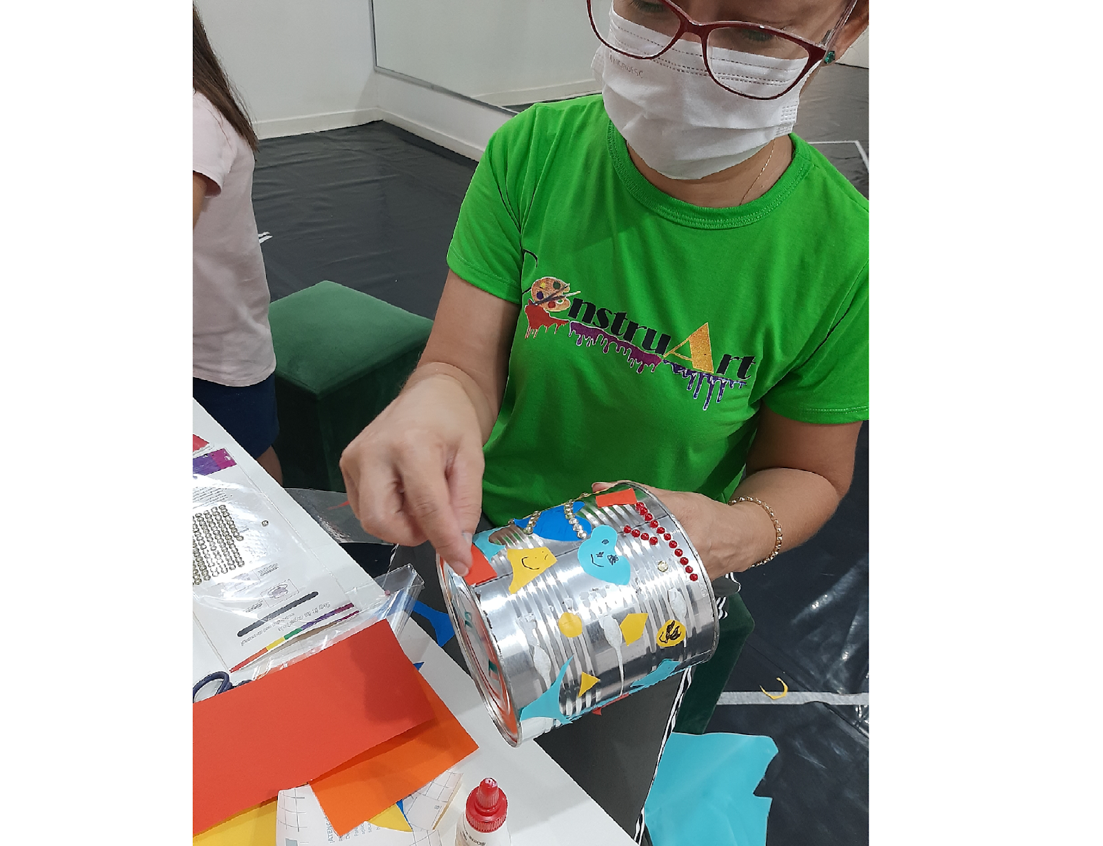 “As crianças estão adorando confeccionar as pernas de lata. Além da aprendizagem intelectual, elas vão desenvolver coordenação motora, equilíbrio e destreza. Foi um momento de descontração muito legal”, disse a monitora, Maria Regina.