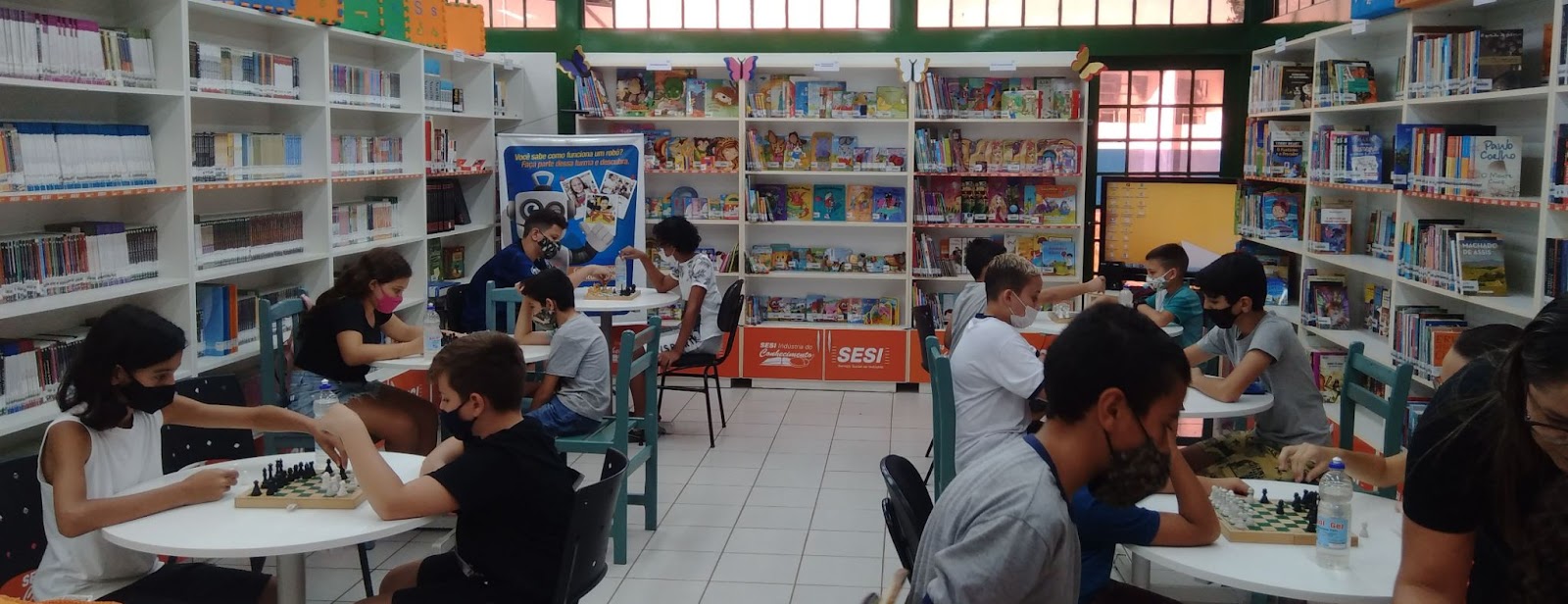 Em Nova Andradina, os estudantes da Biblioteca da Indústria do Conhecimento do Sesi aprendem as regras do jogo de xadrez e a história da modalidade, do tabuleiro e das peças.