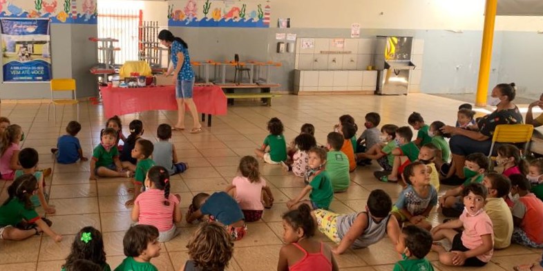 Em Paranaíba, monitoras da biblioteca foram até o Centro de Educação Infantil Antonia Mainardi Ovídio para promover a contação das histórias “A flor e o sapo”, “O Leão e o rato”, “O macaco e o coelho” e “Arara cantora”.