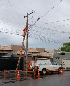 Após o temporal que atingiu Campo Grande e outros municípios de Mato Grosso do Sul na tarde de quarta-feira (5), equipes da Energisa e da prefeitura da Capital trabalham desde a madrugada para reduzir os impactos causados pela ventania e pela chuva forte. A concessionária de energia informou, em nota, que segue com profissionais mobilizados “dia e noite” para restabelecer o fornecimento aos clientes afetados.