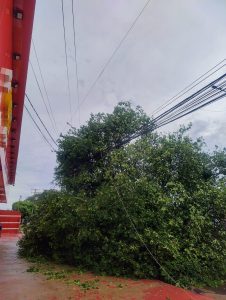 O cenário da manhã desta quinta-feira (6) evidenciou os estragos provocados pelo temporal. Equipes da Sisep (Secretaria Municipal de Infraestrutura e Serviços Públicos) trabalham desde cedo na remoção de uma árvore de grande porte que caiu em frente à USF (Unidade de Saúde da Família) 26 de Agosto, no cruzamento das ruas Rui Barbosa e João Pessoa, no Bairro São Francisco. Cinco servidores atuam com motosserras e triturador para retirar os galhos que invadiram parte do muro da unidade de saúde. Apesar do susto, ninguém ficou ferido.