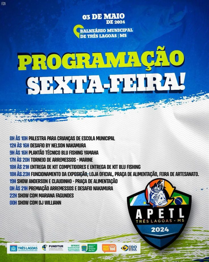 O Torneio é promovido pela Associação de Pesca Esportiva de Três Lagoas (APETL) em parceria com a Prefeitura de Três Lagoas, por meio da Secretaria Municipal de Desenvolvimento Econômico, Ciência e Tecnologia (SEDECT).