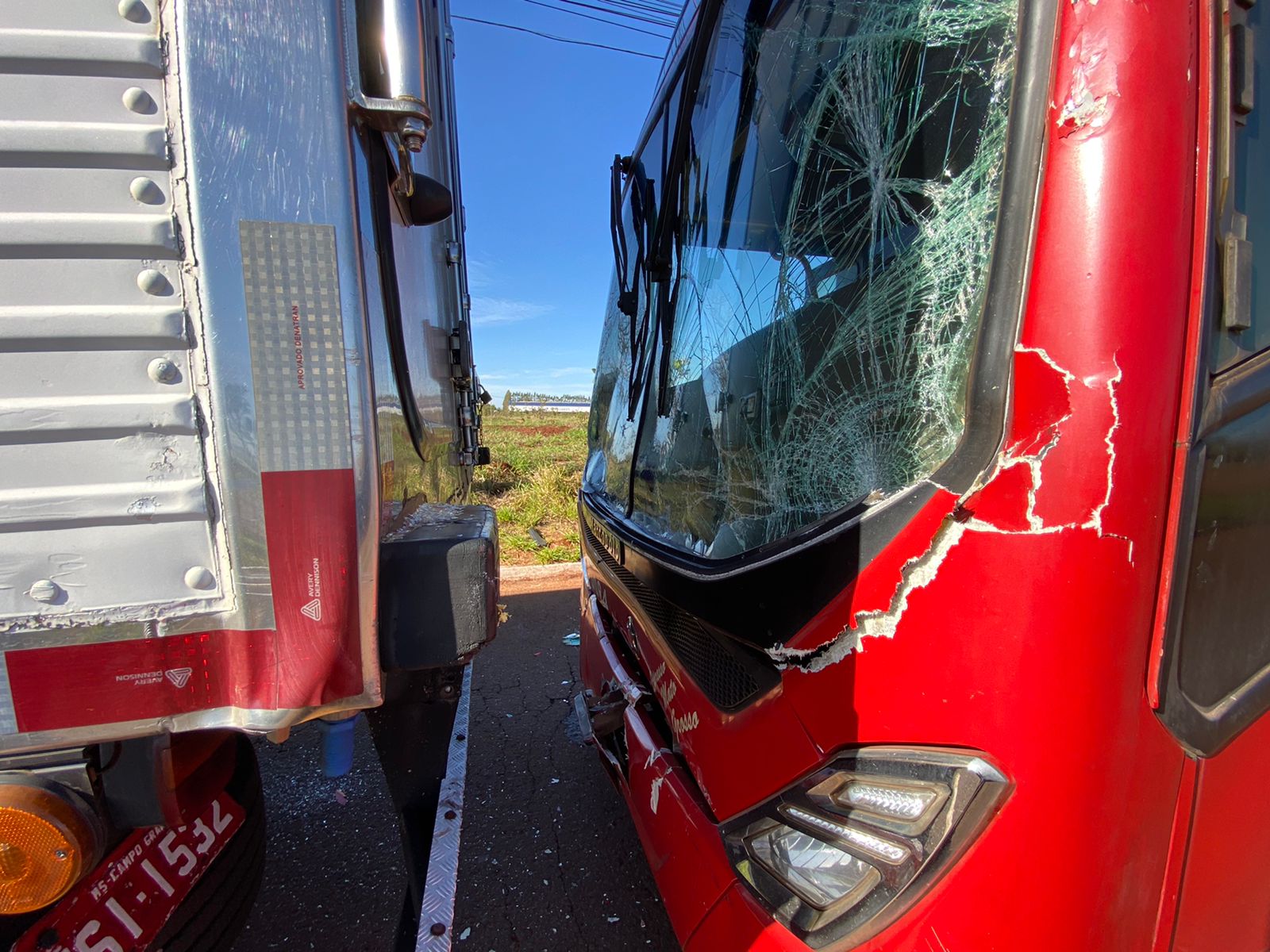 Como uma reação em cadeia, o ônibus colidiu na traseira do segundo caminhão e também teve a frente danificada, perdendo o para-brisa no processo do acidente. Ele fazia o trajeto de Terenos a Campo Grande com funcionários de fábricas próximas. Condutores e passageiros passam bem.