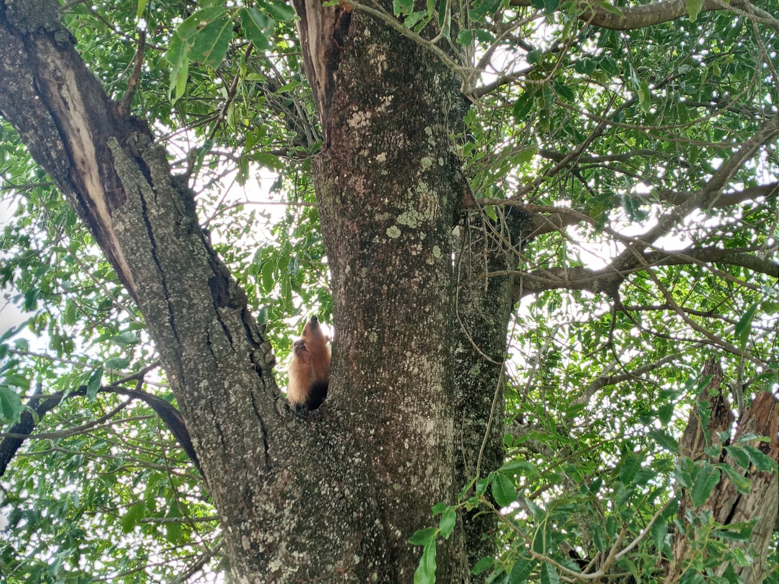 A proprietária do sítio, de 65 anos, telefonou para a PMA após avistar o animal, que adentrou o espaço do para-lama de um veículo e ficou preso no espaço da suspensão, para fugir dos cachorros presentes no ambiente.