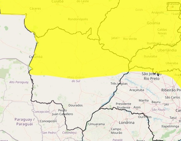 Já o segundo alerta, de tempestades, vale para Amambai, Batayporã, Eldorado, Iguatemi, Itaquiraí, Japorã, Jateí, Mundo Novo, Naviraí e Paranhos, até às 19h de hoje.