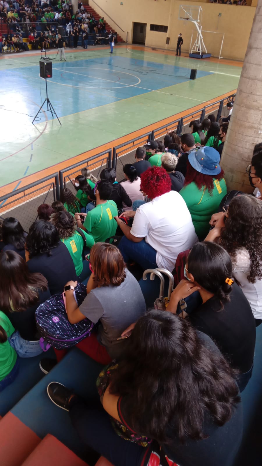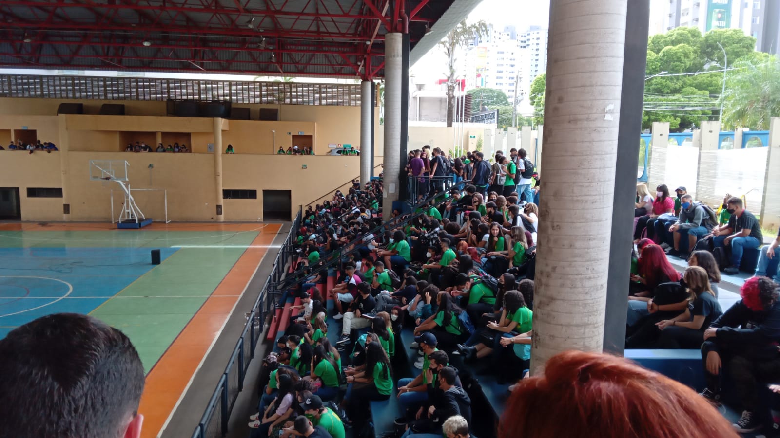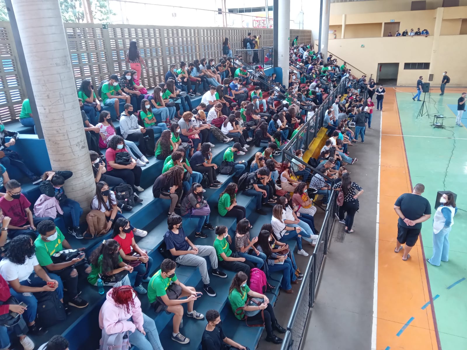 O local que estava atendendo todos os protocolos de biossegurança desde a entrada no ambiente escolar, reuniu os jovens estudantes na área do ginásio da escola para as devidas dinâmicas da escola.