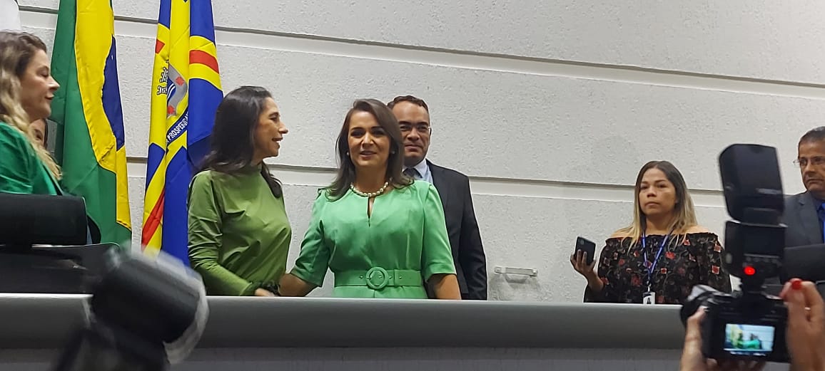 Na foto abaixo, ela faz juramento de posse que antecede a titularidade de comando da Prefeitura.