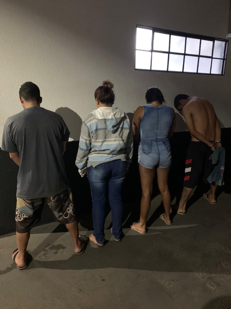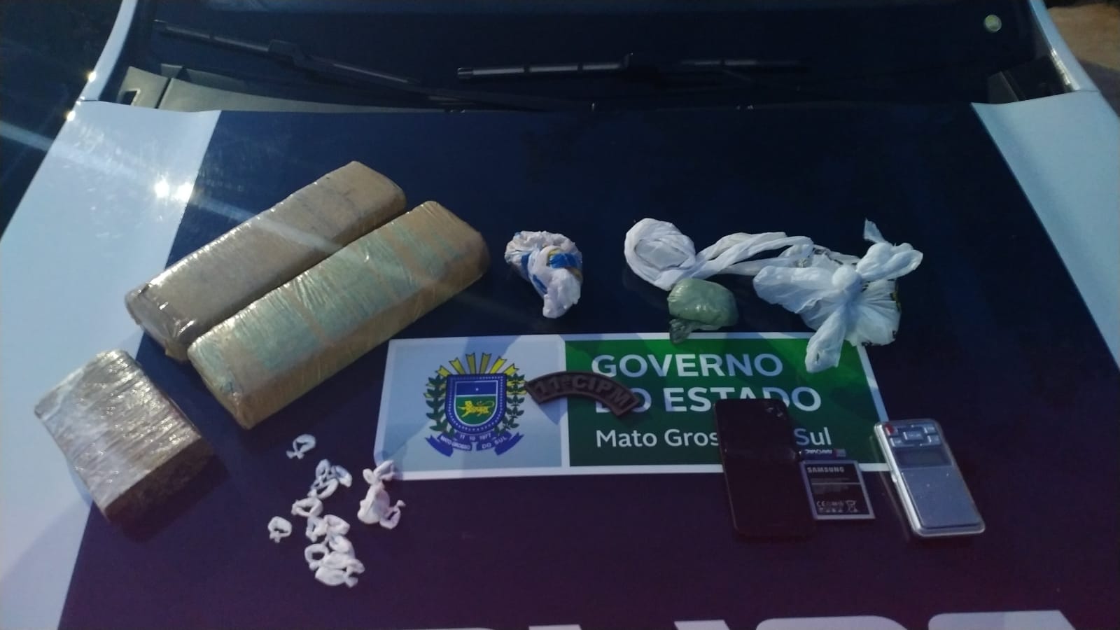 Os policiais averiguaram a casa e encontraram 2.800 gramas de maconha, 98 gramas de cocaína, balança de precisão e dois telefones celulares. Todos os envolvidos foram encaminhados para a delegacia.