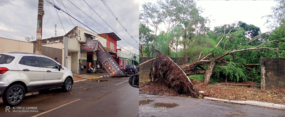 Por conta do temporal e dos fortes ventos, várias casas e estabelecimentos comerciais foram destelhados, queda de árvores e grande parte da cidade ficou por um período sem energia elétrica. Houve vários pontos de alagamento também.
